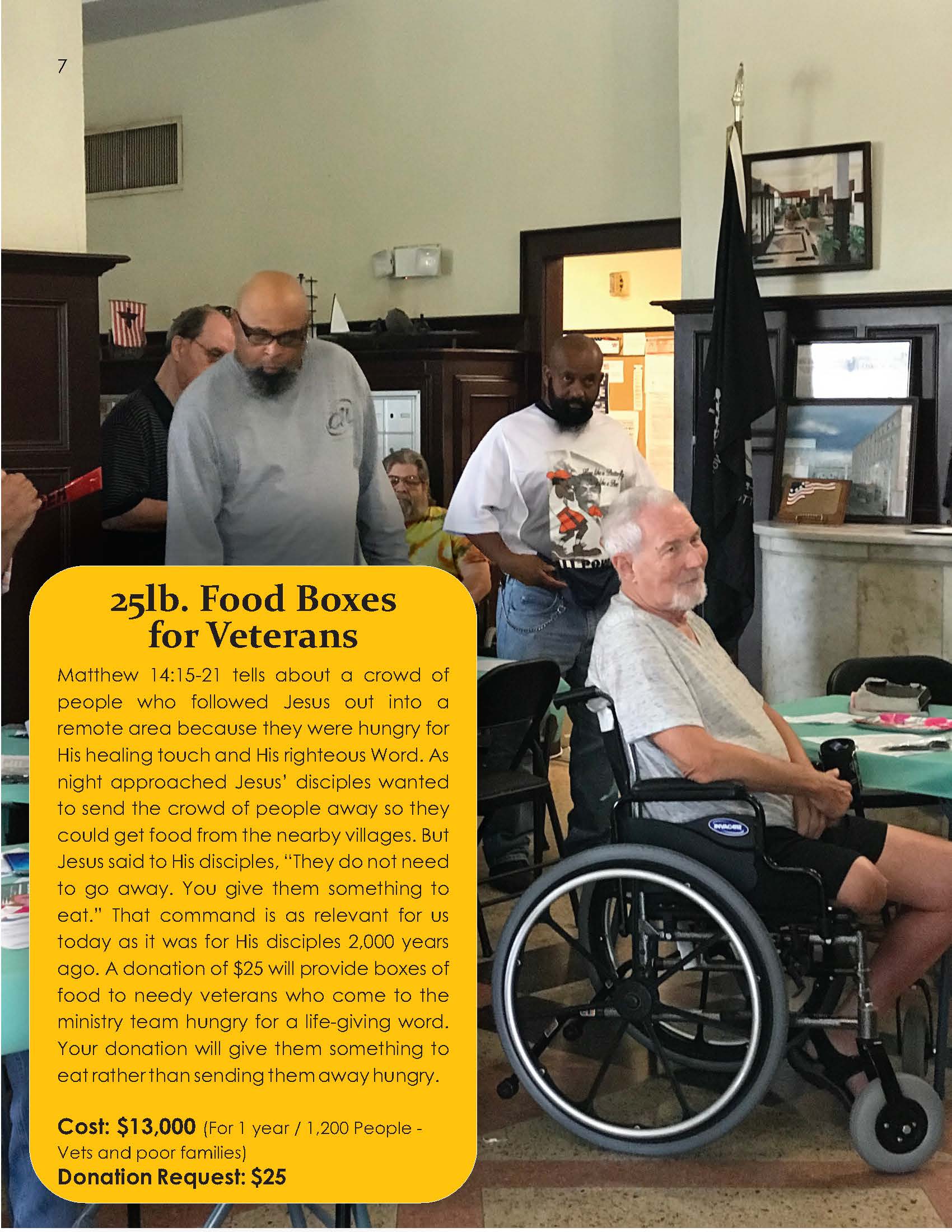 Supporting U.S. Local & National Missions. Providing for the needs of Veterans living in underprivileged communities.
