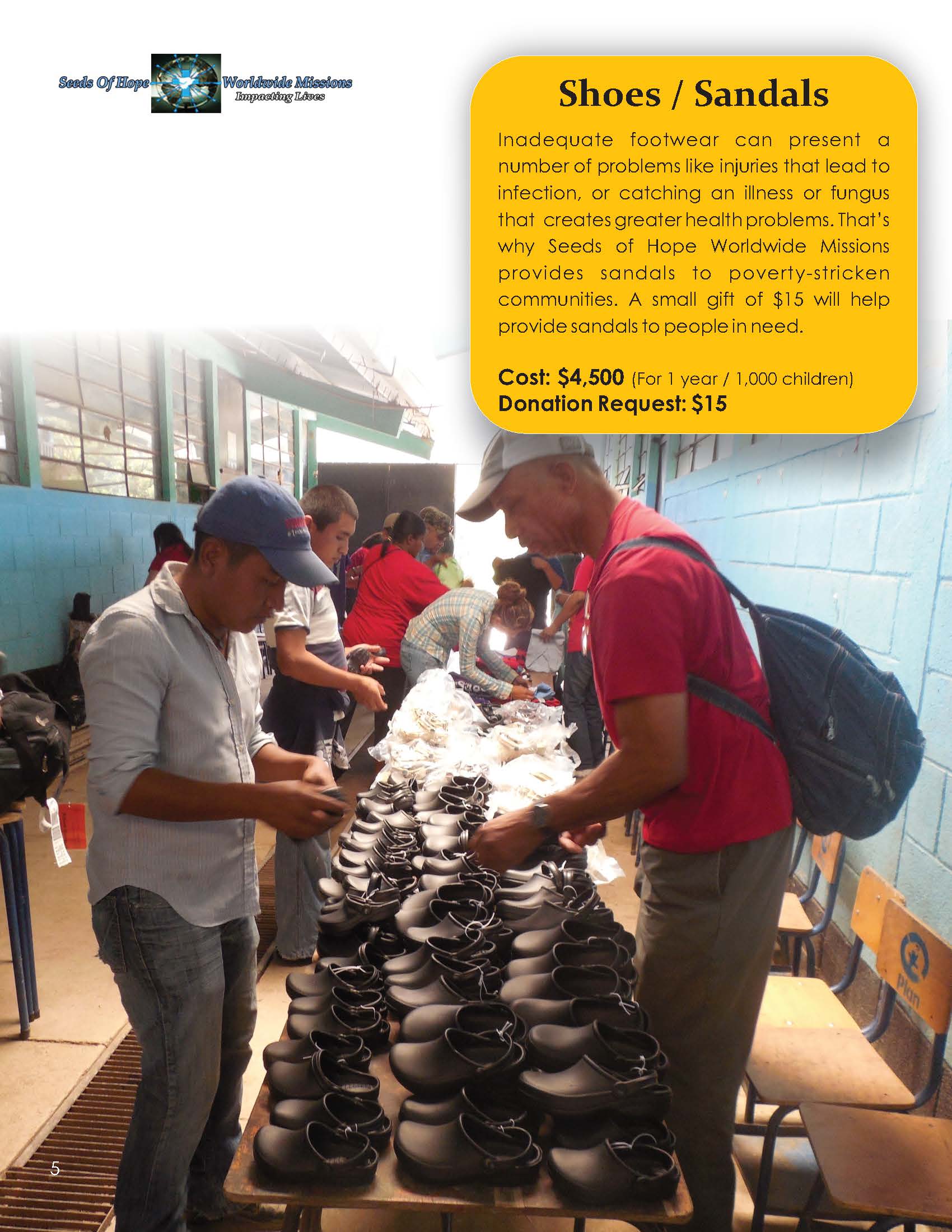 When selecting this item YOUR FUNDS will be used to purchase shoes and sandals needed for children and families living in underserved communities.